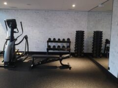 Cardio-wise there’s a treadmill, a stationary bike and a cross-trainer.