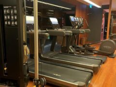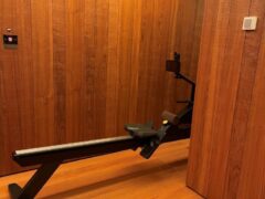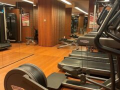 In terms of cardio equipment, there’re two cross-trainers, two treadmills, two stationary bikes and a rowing machine.