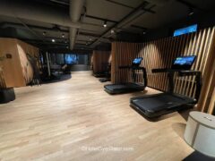 As for cardio equipment, there’re three treadmills, a stationary bike and a cross-trainer.