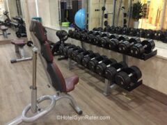 The cardio equipment is solid and ranges from stationary bikes and cross trainers to treadmills and rowing machines. In terms of weight training, there’re a wide range of machines, dumbbells and even barbells!