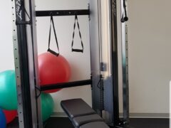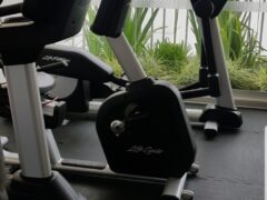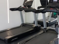There’re a few dumbbells and a cable machine as well as treadmills, stationary bikes and cross trainers.