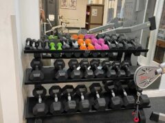 The weight-based equipment centers around a multi-station offering a bench press, leg extensions and later pull-downs. However, there’s also a pretty cool selection of dumbbells as well as a cable machine with adjustable arms.