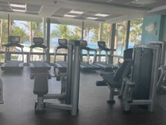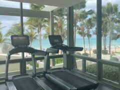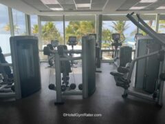 The cardio section consists of a pair of stationary bikes, four cross-trainers and more than a handful of treadmills. Added bonus is that this area of the hotel gym is facing the ocean!
