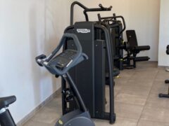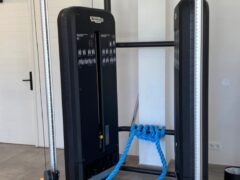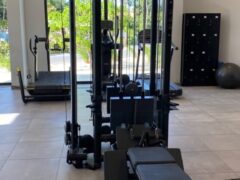 In the center of the room, there’s a cable tower with four separate stations allowing you – among other things – to do lat pull-downs, seated rows, etc.