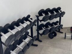 There’s a nice selection of dumbbells and a pair of adjustable benches (decline included).