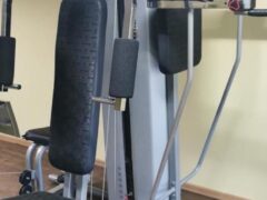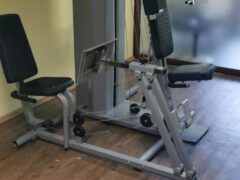 There’s also a multi-machine allowing for seated leg-presses, lat pull-downs and chest flys. On the side, there’s the option of doing dips and leg raises.