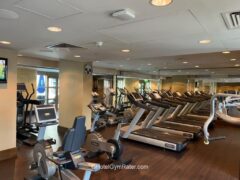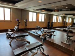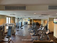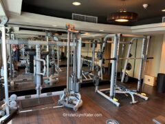 It’s a great hotel gym split into three rooms with the central room overlooking the pool.