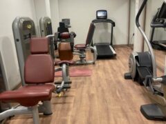 As for cardio equipment, there’s a cross-trainer, a treadmill and a stationary bike.