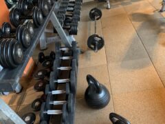 They have kettlebells and a solid selection of dumbbells as well as benches including the decline option.