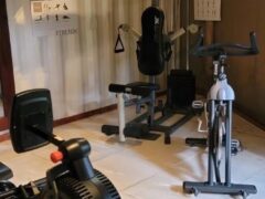 As for cardio, there’s a rowing machine, a cross-trainer and a spinning-like bike.