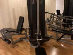 There’s a multi-gym consisting of a chest presses, lat pull-downs and leg extensions.