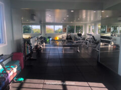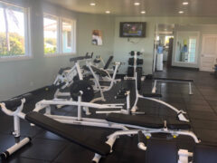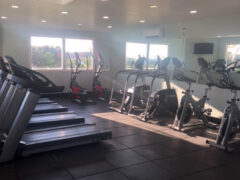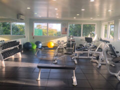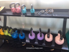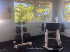 There aren’t any barbells, squat racks, pull-up bars or pulley systems, but a good work out can be enjoyed with the available equipment.