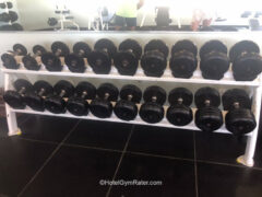 Dumbbells go up to 50 lbs/22 kgs and there’re different benches to work with: straight back, flat, adjustable as well as the decline option.