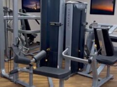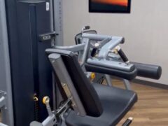 There’s also a lat pull-down machine, a leg extension machine, a leg press machine and a shoulder press machine.