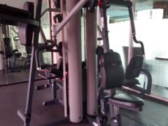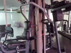There’s even a multi-gym making it possible to do chest and rear delt flys, leg extensions, lat pull-downs, seated rows, leg presses and chest presses.