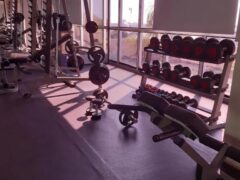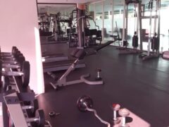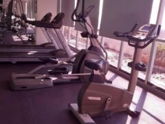 As for cardio equipment, there’s a stationary bike, a cross-trainer and two treadmills.