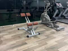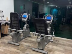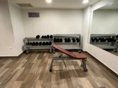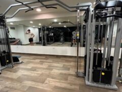 In terms of cardio equipment, there’s a cross-trainer, two stationary bikes and two treadmills.