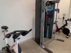 In terms of cardio equipment, there’s a stationary bike, four treadmills including a curved option, two cross-trainers, a spinning-like bike and even a Peloton bike!