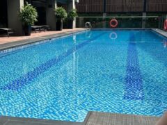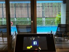 Parts of the hotel gym is overlooking the outdoor pool.