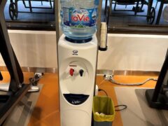 Does the hotel gym offer complimentary water?
