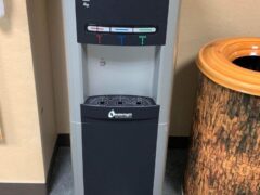 The water cooler comes with individually wrapped cups. I especially liked that the water cooler lets you choose from hot, cold, or room temperature water.