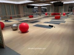 The cardio section is overlooking a fairly big indoor pool and there’s a spacious area dedicated to yoga/stretching and floor exercises.