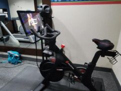 Cardio equipment includes a treadmill, a cross-trainer, a Peloton bike and a stationary bike.