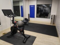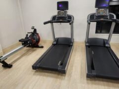 The cardio section is quite extensive with a Peloton bike, a spinning-like bike, three cross-trainers, a stationary bike, four treadmills and a rowing machine.