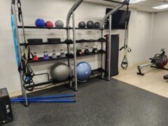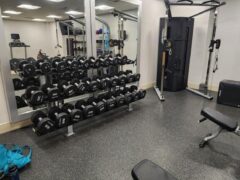 There’s also a fair selection of kettlebells and a dual cable machine.