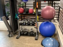 Strength equipment consists of dumbbells going up to 50 lbs/22 kgs, kettlebells go up to 45 lbs/20 kgs and there’re two adjustable benches.