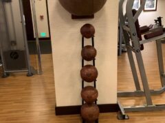 Other equipment included yoga blocks, medicine balls (up to 20 lbs/9 kgs), exercise mats, an exercise balls, a Bosu ball, a cross-fit agility box, battle ropes and foam rollers.