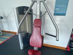 Pin-operated machines include leg curls, leg extensions, chest presses, shoulder presses chest flys and ab crunches.