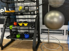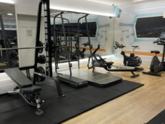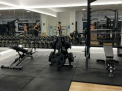 There’s also a nice range of pin-operated machines (for example, le presses, leg extensions, lat pull-downs and shoulder presses).