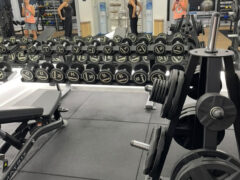There’s a solid selection of dumbbells with a fair number of adjustable benches.