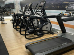 Cardio equipment covers a spinning-like bike, a rowing machine, a stationary bike and treadmills.