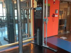 There’s also a dual cable machine, but the selection of handles is very limited.