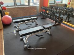 Dumbbells go up to 55 lbs/25 kgs and there’re two adjustable benches.