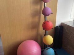 Accessories cover medicine balls, exercise balls and an exercise mat.