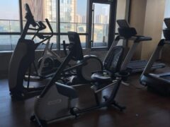 In terms of cardio equipment, there’re two treadmills, a spinning-like bike, a stationary bike and a cross-trainer.