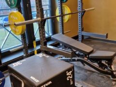 There’re two squat racks/bench press setups with plenty of plates. There’s even a trap bar!