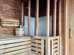 Full towels are available in the locker room and sauna.