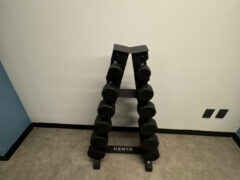 Dumbbells to up to 30 lbs/ 13 kgs and there’s an adjustable bench as well.
