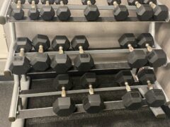 Dumbbells go up to 50 lbs and there’s an adjustable bench as well.
