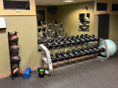 Additional items in the hotel gym were one weight bench, one foam roller, one exercise ball, one resistance band, three exercise mats and medicine balls (up to 10 lbs/4 kgs).