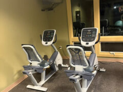 Cardio equipment consisted of two treadmills, two cross-trainers, and two stationary bikes.