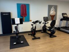 In terms of cardio equipment, there’re three treadmills, a stationary bike, a spinning-like bike, a Peloton bike and two cross-trainers.