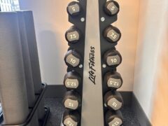 As for cardio equipment, there’s a Peloton bike, two treadmills and a cross-trainer.