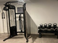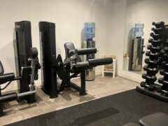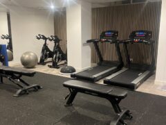 In terms of cardio equipment, there’s a cross-trainer, two treadmills and two spinning-like bikes.