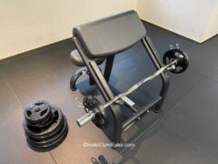 There’s an EZ bar with a fair range of weight plates as well as a bench for biceps curls.