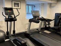 As for cardio equipment, there’s a stationary bike, three treadmills, a cross-trainer and a rowing machine.